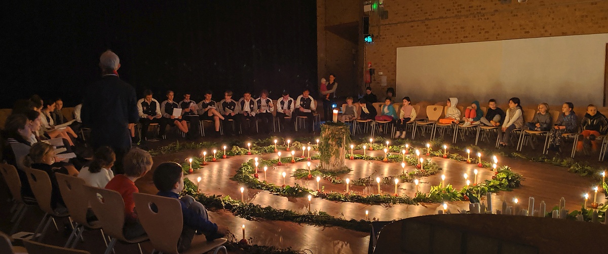 All children and staff celebrated MidWinter this week - the campuses were alight with the warmth of fire, candles, and lanterns. These Kindergarten lanterns shone brightly during their festival, and Class 1 - 6 and Year 7 - 12 walked the MidWinter Spiral at Middle Cove. During the first MidWinter spiral pictured in the newsletter banner photo pictured above, Head of Music Christian Lillicrap led Year 12 in beautiful songs in harmony while musicians played lyre for their spiral walk. Each Year 12 student walked the spiral accompanying a Class 1 child - a special juxtaposition, as it is the final MidWinter Spiral walk for Year 12 students, and the first one for Class 1.
