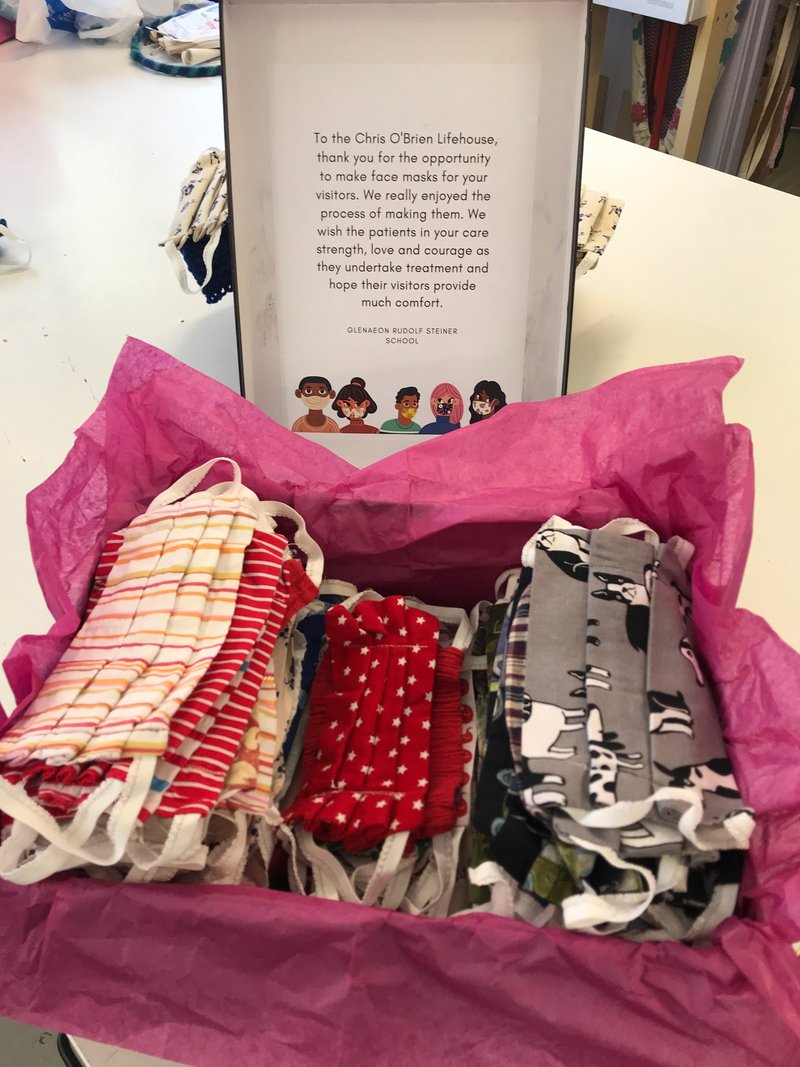 Glenaeon Duke of Edinburgh students Pipi and Olivia, have collected over 100 face masks hand-crafted by a team of Glenaeon volunteers for use by the staff and visitors at Chris O’Brien Lifehouse cancer treatment Hospital in Camperdown.