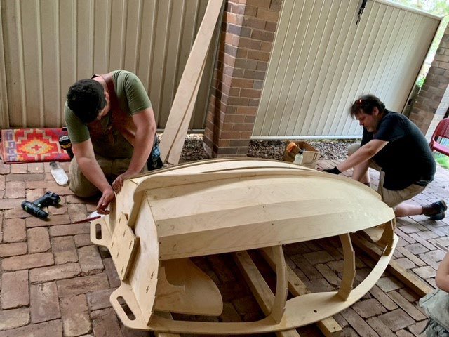 At Preschool, our new boat arrived on Friday and on Saturday Tim (Owen’s dad), Ben (Yolandi’s dad) and Mike (Axel’s dad) came and helped screw it together and glue it. How lucky we are to have such help? Tim and Ben can be seen below finishing up around 7pm! Noel will varnish it and make a base. Our thanks to these very kind parents.