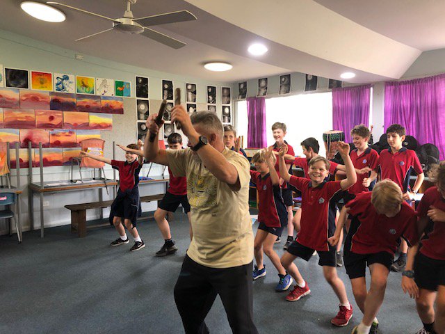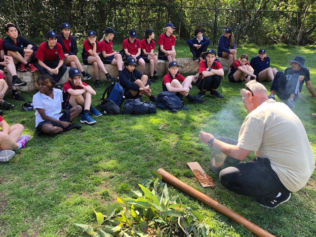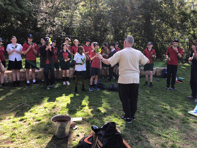 Matthew demonstrated different types of boomerangs (some meant to return, others used as weapons to hunt animals). As a very accomplished and celebrated song-man he revealed various simple Indigenous instruments for rhythm as well as the digeridoo. Glenaeon’s own Jamie (Year 7 teacher), himself a good didgeridoo player, played together with Matthew and gave the students an idea of the various ways of playing a digeridoo. Matthew spoke about the close connection to nature and the animal world and how everything Indigenous people did and do has connection to the spiritual world. One very interesting idea was that in Indigenous perspectives, all and everything is interconnected, all actions influence one other, nothing can be seen in isolation. And while we in a modern western context might think the same, our actions tell a very different story. The digeridoo was not just there to play music for example, it can also be used, among other things, to imitate animal sounds and connect to the spirit world of the animals.