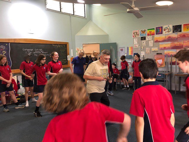 Class 3, 4, 5, 6 and the Year 9 cohort and various teachers witnessed Matthew playing the digeridoo and presenting song and dance he had practised with the classes during his time with them. All groups performed different songs and dances and Matthew sang to them in his very intricate and quiet way. We all came away enriched having been part of a culture so relevant to this country yet often so hidden away. It became visible to our students’ eyes, hearts and minds for at least this day, and hopefully many more to come.