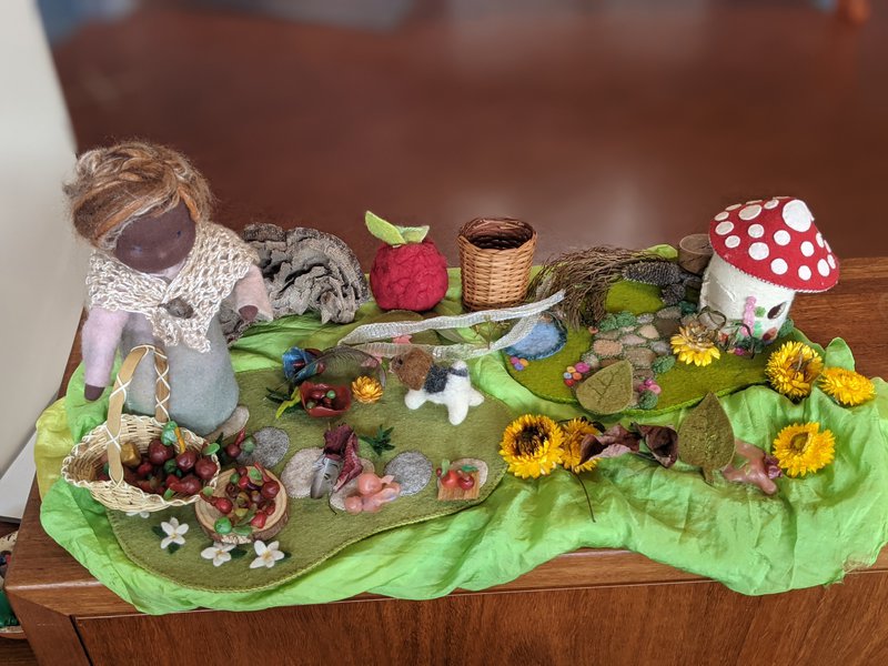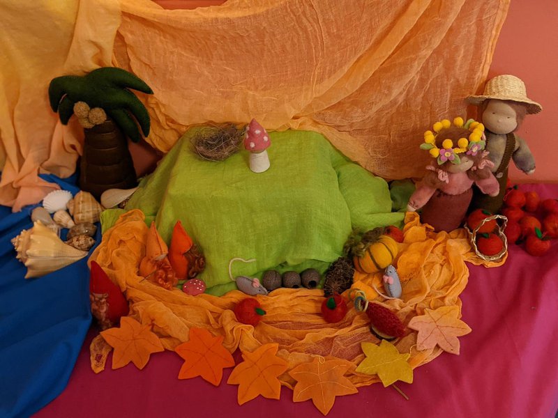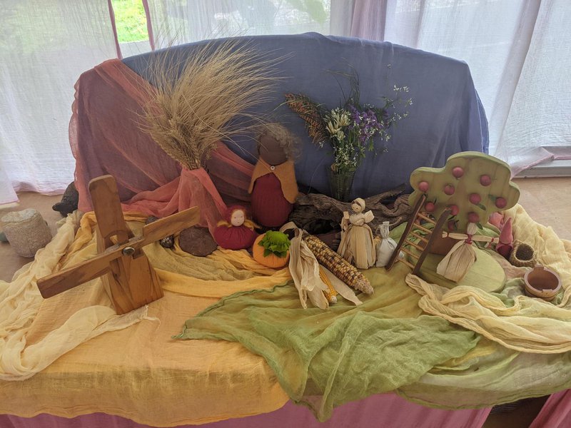 As the glorious sunflowers begin to fade and the zinnias shine the last bursts of summer, Autumnal colours have arrived. We acknowledge the changing of our seasons and begin to prepare for the upcoming Harvest Festival. Our nature tables tell tales of Harvest, apple picking and the children have also been making Mother Earth a bounty of beautiful apples from beeswax and bringing them to the nature table in Reception.