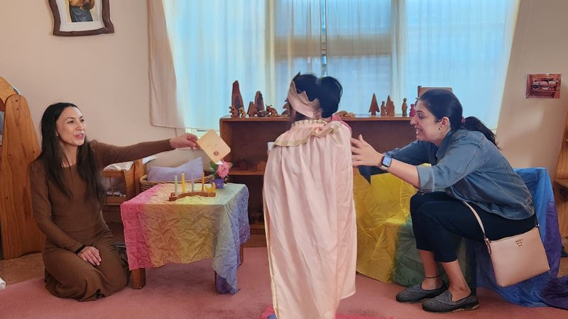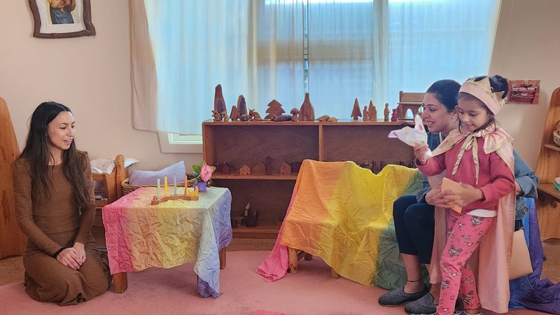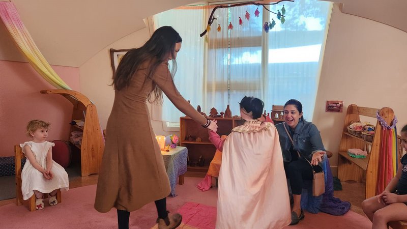 Birthdays are very special celebrations at Preschool as the parents come and sit in the circle of children with a rainbow bridge leading toward them. The birthday child, and their guide, dressed in capes and gold crowns come down from the starry heavens towards the parents while the birthday story is told. A handmade card and gift for each child is given by the teacher. How special the arrival of a child is and how joyful the celebration of what they bring as gifts to earth. Parents stay for morning tea and cake with the class and memories to last a lifetime have been created.