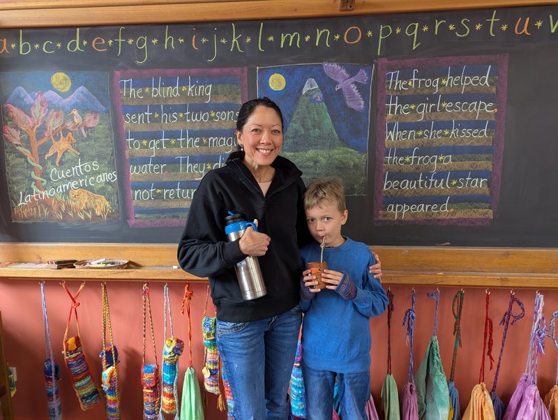 In addition to their daily Main Lesson work, Class 1 had two special guests. Carolina Ou Smolinski taught the children about the traditional use of mate and its cultural significance. They were enthralled to see all the special cups and straws from her collection and to hear the legend of its origin. The children also enjoyed alfajores, an Argentinian dessert.