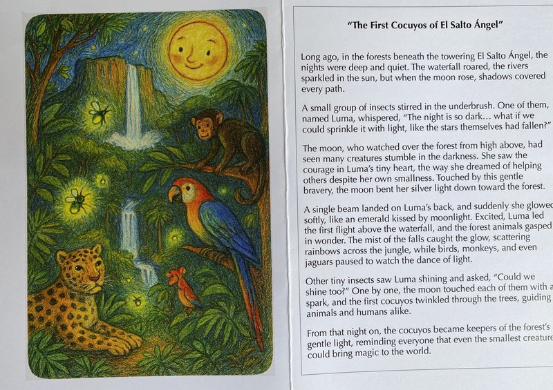 Patricia Barreto-Ramirez told a cherished story about fireflies (Los Cocuyitos Alumbrados) from her home country of Venezuela. She also sang a song and played the Cuatro, a traditional guitar. The children were so delighted they all called out “Otra Vez!”, requesting an encore performance. They also enjoyed tequenos (cheese sticks) and majarete, a little sweet treat.