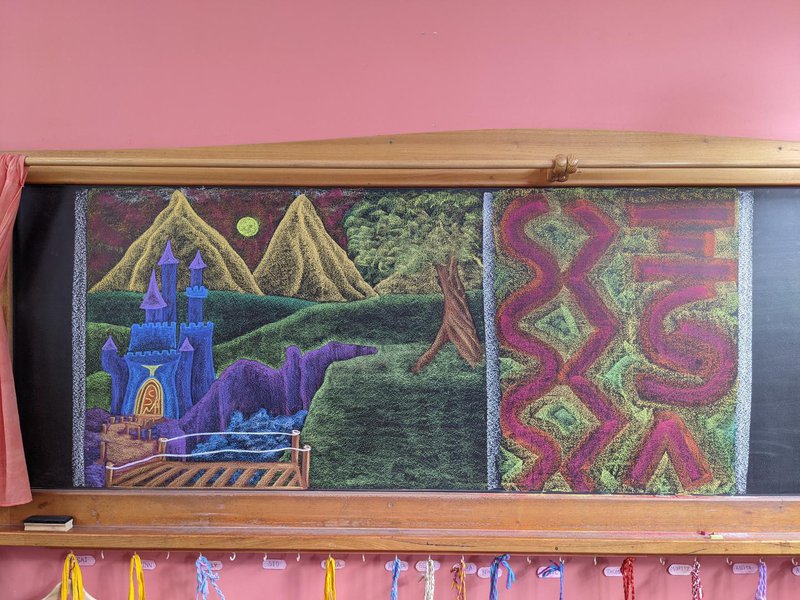 Class 1 have explored line, curve and many shapes in their first Main Lesson with teacher Jamie Loftus. They have journeyed with Geoffrey and his dog Rufus through an adventurous land discovering many forms and shapes in preparation for learning letters and literacy. Straight and curved lines form the foundation of writing, geometry and what will later emerge as mathematical concepts. In English (and most European languages) the orientation of the written word is left to right, top to bottom, and accordingly, the forms we are practising now adhere to these principles. The children have drawn, painted and walked these shapes as a foundation to beginning the adventure of learning the capital letters.