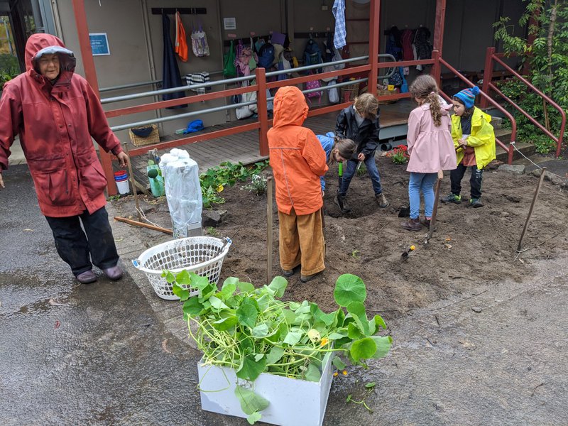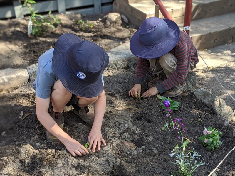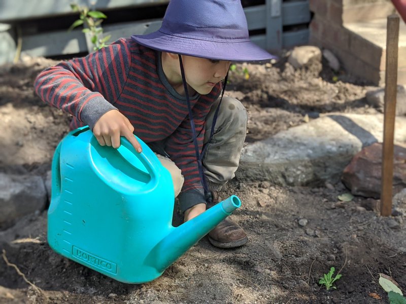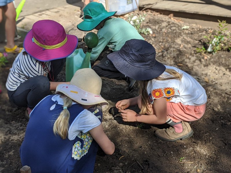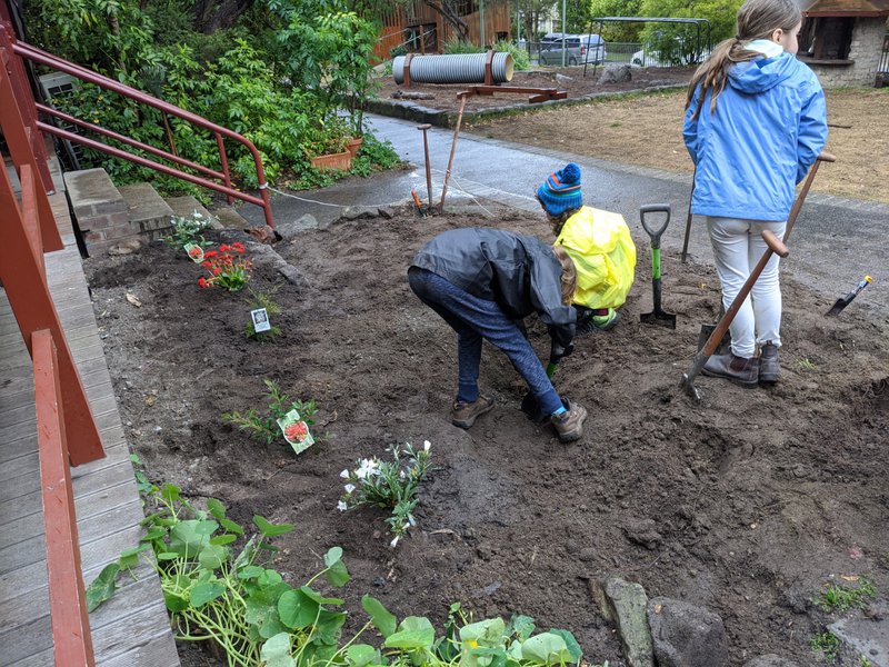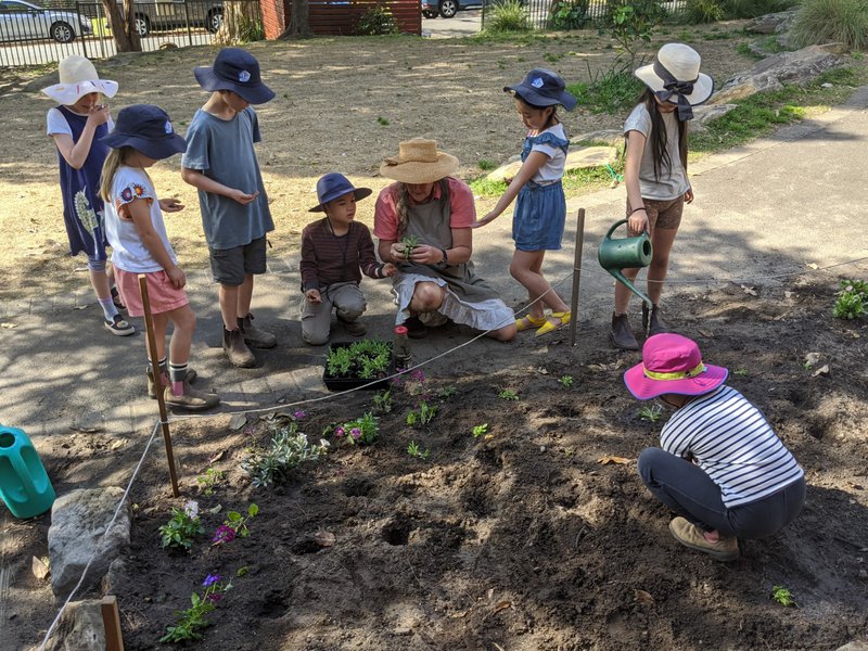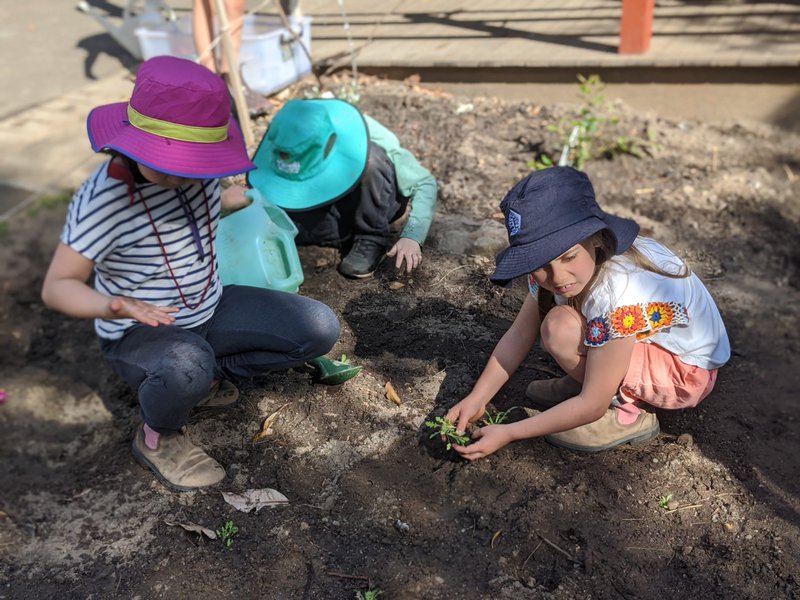 Class 1 & 2 have been patiently toiling the soil outside Class 1, in preparation for this day. They have dug out roots and rocks, and planted both enduring natives close to the building, and flowers in the front section. This will be another 'working garden' for the children at Castlecrag, who all work in the garden every week with teacher Sandra Frain. It is lovely to see such care and enjoyment as they carefully tend their baby plants.