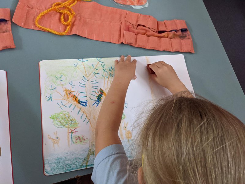 The Class 1 Main Lesson on upper case letters is well and truly underway and the children are really enjoying the fairy tales, drawings and finding the letters around them in the classroom. They practise writing using correct formation, sounding out and building the phonemic awareness that underlies reading and writing as these capacities unfold. They also used wax to form letters, this week modelling 'T' for Tree and 'N' for Needle. A multi-sensory approach to learning allows the student to experience and learn through song, rhyme, movement, bookwork and art, stimulating the visual, auditory, kinaesthetic and tactile senses as they see, hear and touch to create the things they are learning.