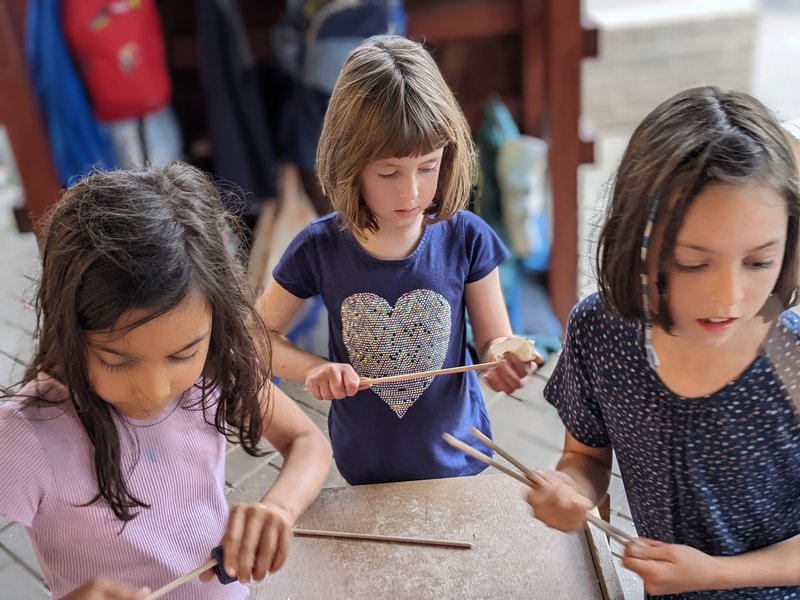 Class 1 are busy sanding, oiling and finding gumnuts for their knitting needles, which they will use for their upcoming knitting lessons with Handcraft teacher Elizabeth Ellean. There is much excitement as they go and search under the perfect tree for the gumnuts for the ends!