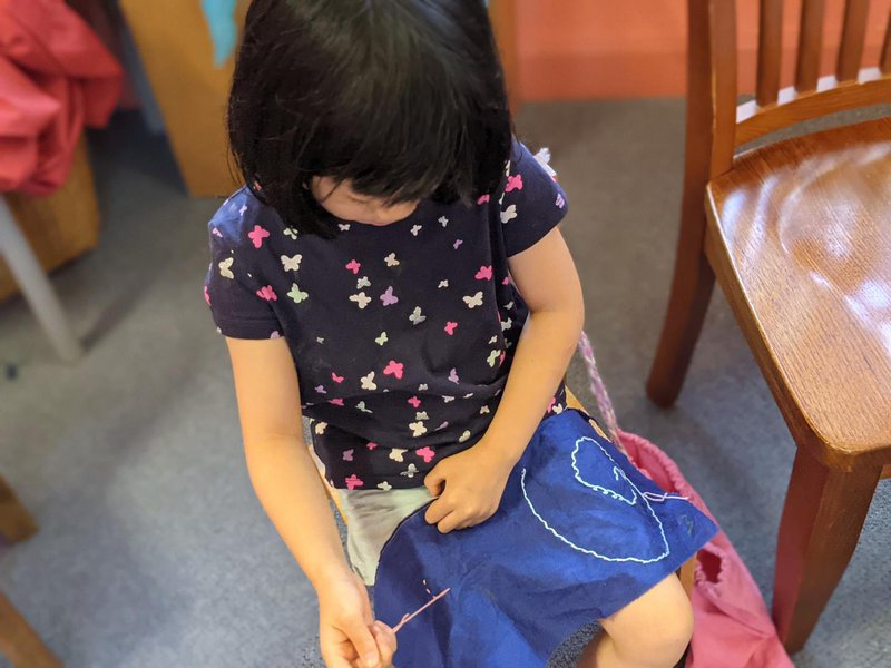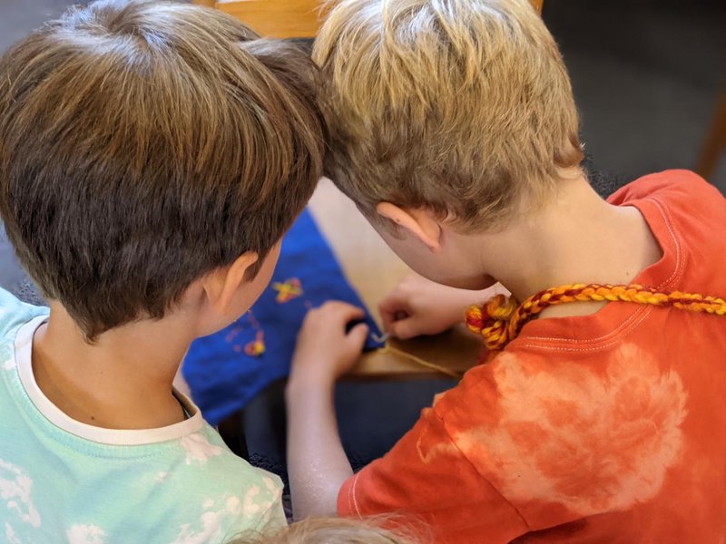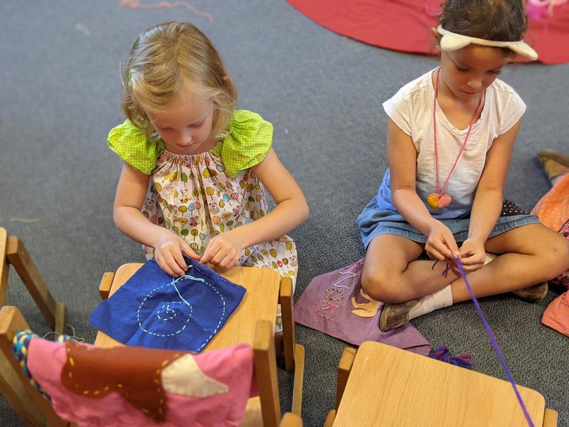 Class 1 students have been making their counting bags with Handwork Teacher Elizabeth Ellean. Adding backstitch to their growing repertoire of skills, they sewed the sides of their bags up and threaded the plait through the top hem. These are now ready to hold their counters as they begin their new Math Main Lesson with Class 1 Teacher Jennifer Stone.