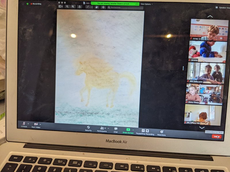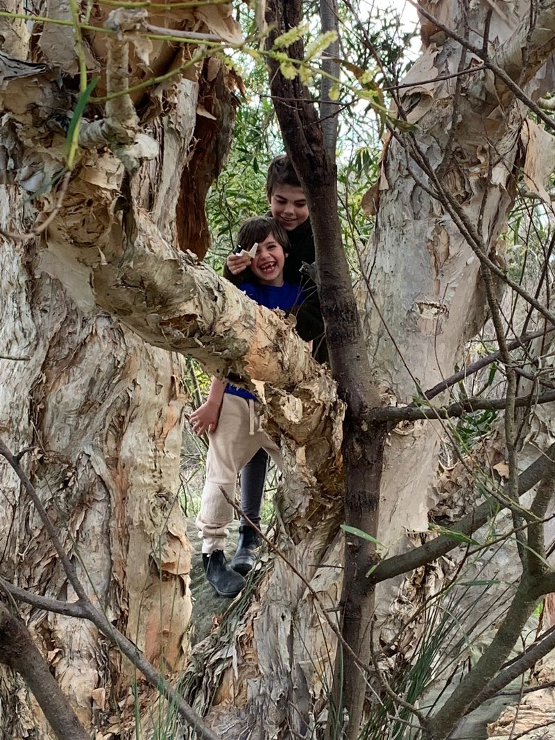 Class 1 children have been Zooming with Class teacher Jennifer Stone each morning as they recall their story, work in their Main Lesson books and catch up together each day. Keeping the connection to the Class Teacher Jennifer Stone is important, and they have been learning English, grammar and sentence formation through the rich world of the Russian Fairytales. The children also have Jennifer's audio recordings of her stories, Morning Circle, verses and songs, and literacy/maths worksheets and games. They follow a very similar rhythm to what the children would learn if at school, including afternoon sessions of Japanese & Craft. They have also been having fun in their favourite trees, and noted National Tree Day for schools last Friday!
