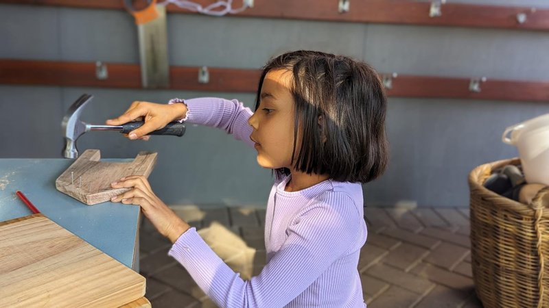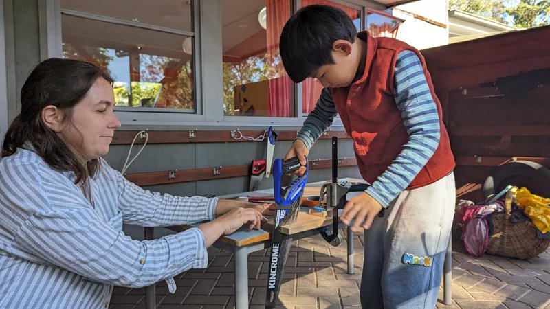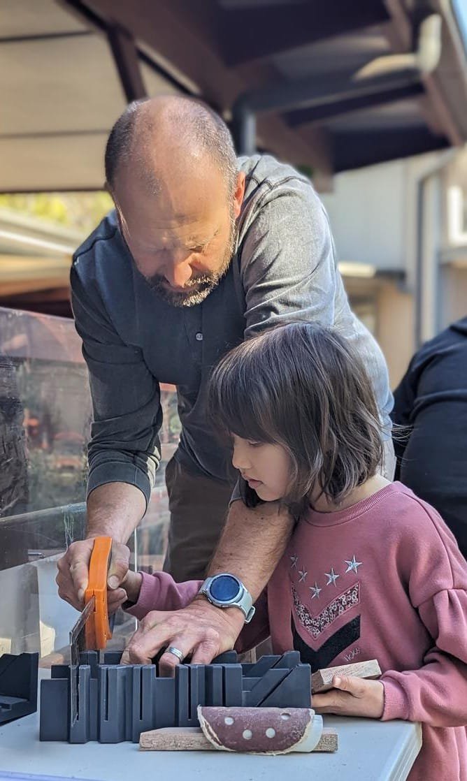 Class 2 experienced a woodworking afternoon with Class Teacher Jamie Loftus and parents on a sunny Friday. The children were creating boats from a collection of wood, shaping their vessels and adorning them with cabins, rails, and masts from a lucky dip box of assorted shaped timber.