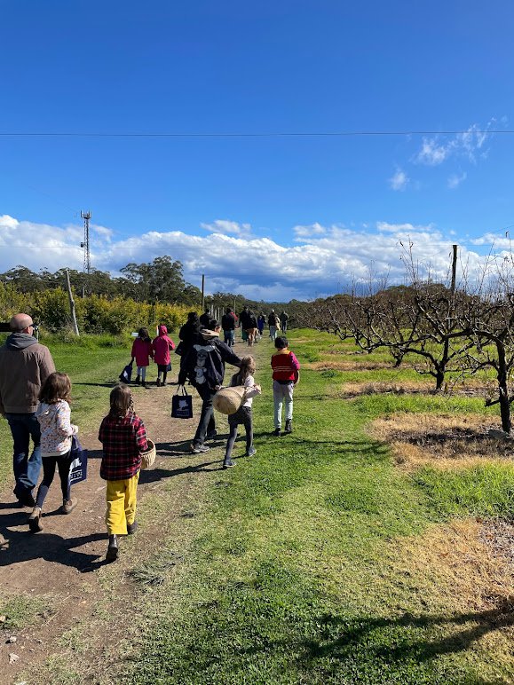 Last Sunday the Class 2 children, with parents and siblings along with Class Teacher Jamie Loftus, visited Canoelands Orchard near Dural for our fruit picking family day. The children happily played in the fresh country air before gathering in the orchard's 'classroom' to learn about the wonders of honey bees from another 'Jaime': 3rd generation orchardist and beekeeper. Everyone loved this session and the children asked great questions of Jaime and Jamie; the class will be learning more about bees back at school soon.