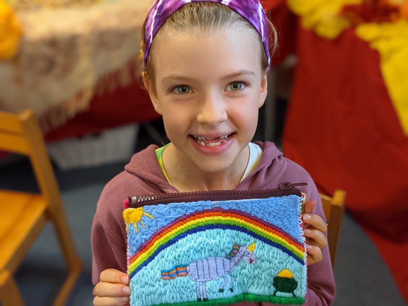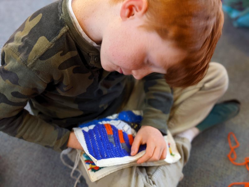 Class 2 have been stitching their own pencil cases, and the results are remarkable. One side has mountain and valley patterns in long stitch, whilst the other side contains their own design, carefully stitched. From the Opera House to rainbows, a cricket match, animals and even the sinking Titanic, their pencil cases will take them all the way to Class 6!