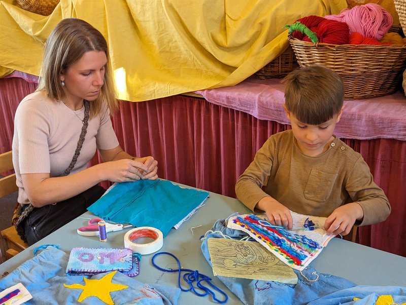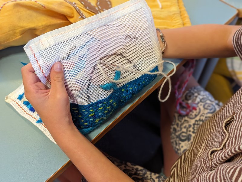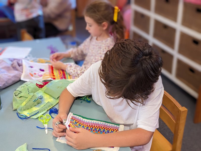 Class 2 have been learning long stitch and making their own beautiful pencil cases with handwork teacher Elizabeth Ellean. One side is decorated with colourful geometric shapes that the children choose and the other side is a picture that each child designs themselves and then creates in stitching. There are some wonderful animals and landscapes.... and they have only just begun! We look forward to seeing the finished creations.