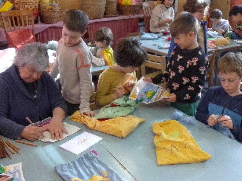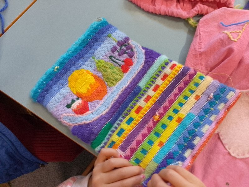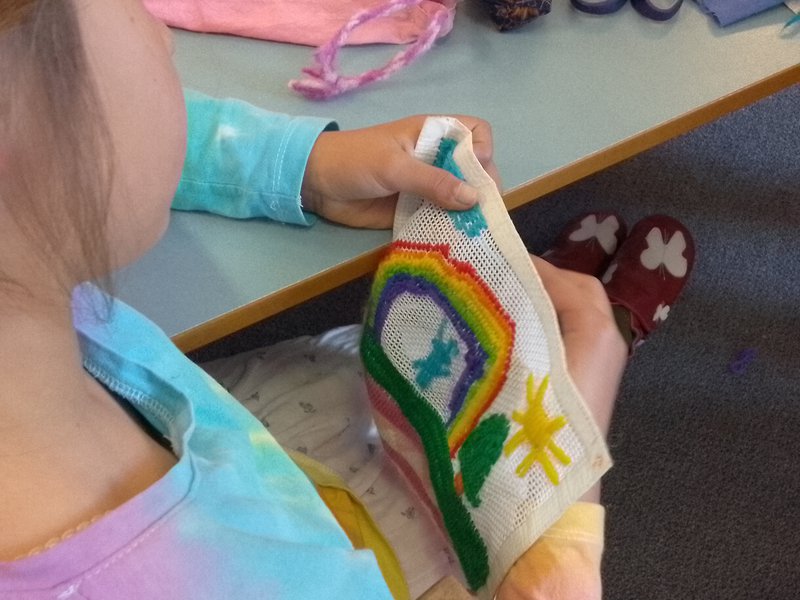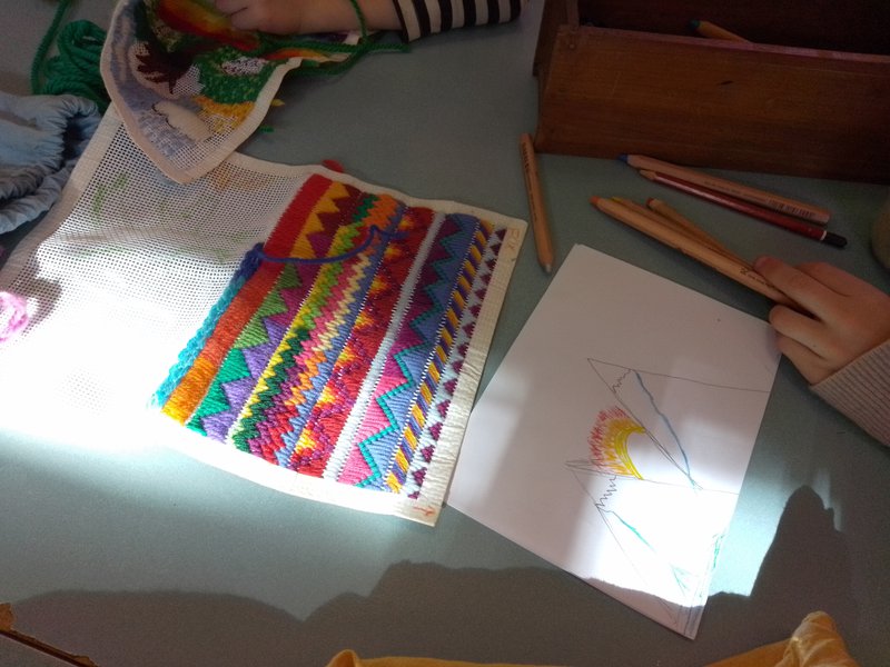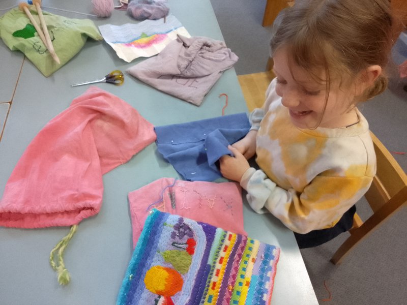 Class 2 are completing the most creative long-stitch pencil cases with Handwork teacher, Elizabeth Ellean. It's wonderful to see their designs and patterns emerge incorporating geometric patterns of many shapes and designs. The children carefully draw their own image and are helped to draw this onto the stitching canvas. They then stitch their own picture – a surfer, dragon, rainbow, fruit, a boat and a sunset are among many creations. Well done Class 2!