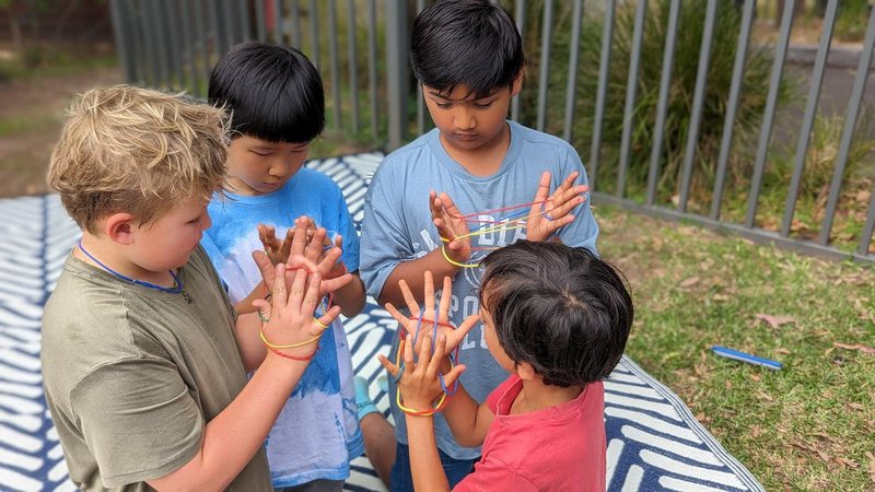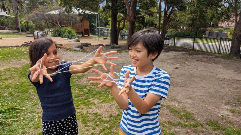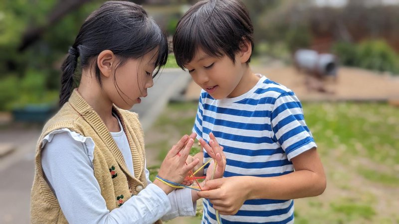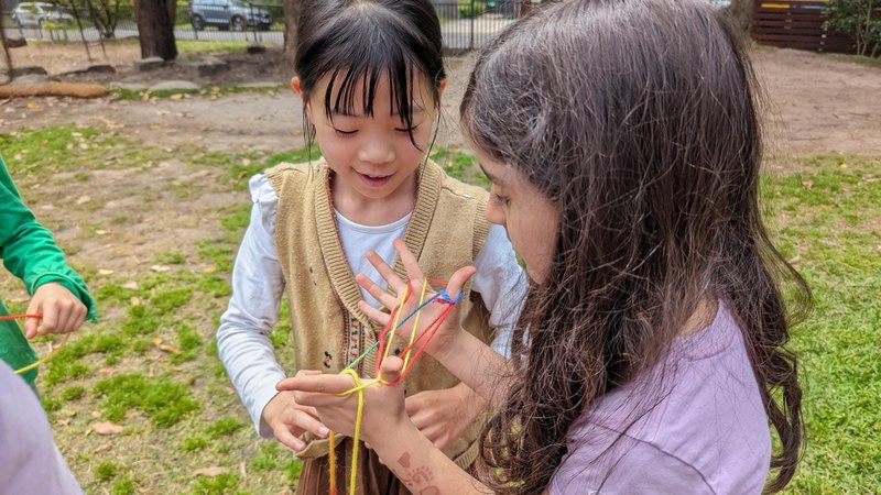 Class 2 have been learning complicated string games at play and are having a wonderful time playing them! They have even been making up their own ones and creating them in pairs! Japanese Teacher Junko Nicholas helped them with some of the tricky.