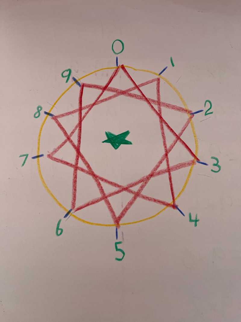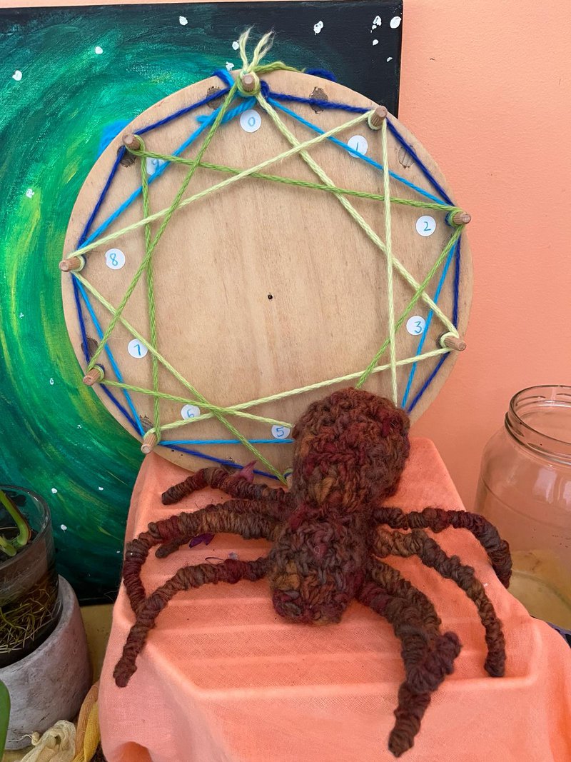 Class 2 have been learning their times tables with the help of a special friend called Ida Spider! Each day, Ida weaves a secret pattern in her beautiful web as she helps the Class 2 students learn their times tables. When each number is woven onto a 10-pegged web board, a new pattern emerges! This simple geometry shows there are underlying patterns in numbers, many of which come out to play in times tables!