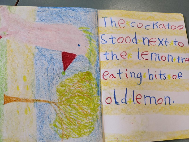 Class 2 have been furthering their literacy and geography skills with a Main Lesson centered around Twiggy the Cave bird. As Twiggy's siblings go out into the world and meet other birds, they learn a lot about them and bring the stories back to Twiggy in the cave. Twiggy is still very small and too fragile to leave the nest, so the stories nourish her and create beautiful pictures in her mind. They are also learning the local geography of Sydney and our own surrounds as the birds travel across our landscapes from Botany Bay to Palm Beach and west towards Parramatta. The children have been writing longer sentences, drawing beautifully and practicing their word families alongside this main lesson.