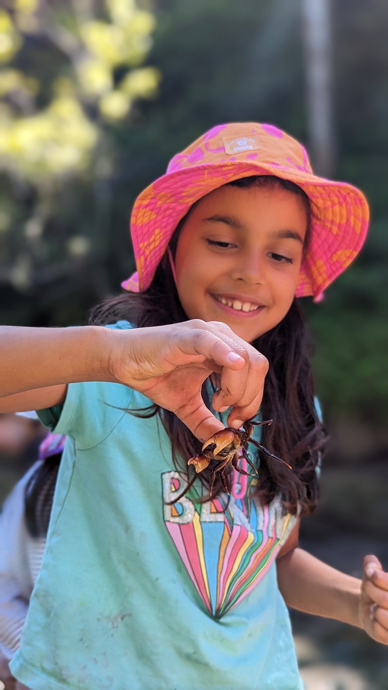 A very excited Class 2 set out on a bushwalk on the last Friday of Term 1 with Class Teacher Jamie Loftus and parent volunteers. It was perfect warm and sunny autumn weather as they made their way along paths and tracks in Castlecrag down to the harbour, singing merry songs, counting and spotting many little treasures. After lunch at 'Crab Beach', the children learnt from Jamie how to find crabs and handle them safely, which led to proud and excited calls of "Jamie, look - I found a big one!"