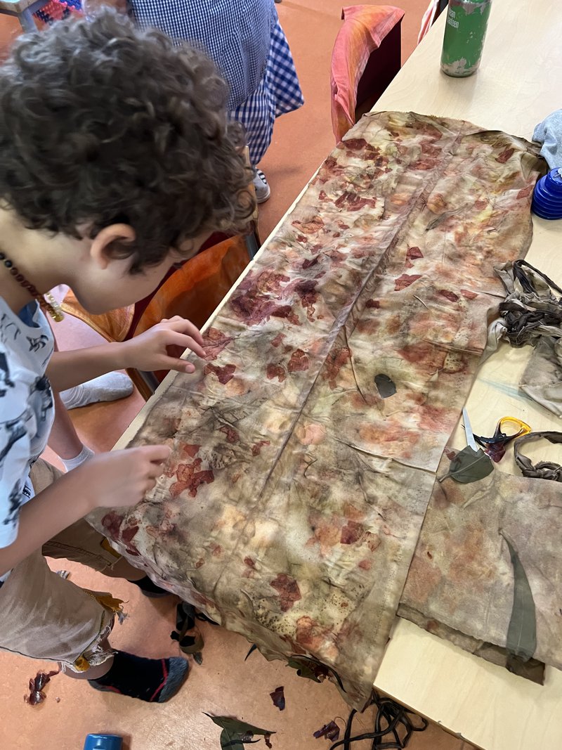 Each fabric is unique and special. When it came time to finally unwrap the bundles, the children were very excited to see what they had created. The smell of eucalyptus and other flower and leaf scents permeated the classroom as the natural designs were revealed. Great work Class 3!