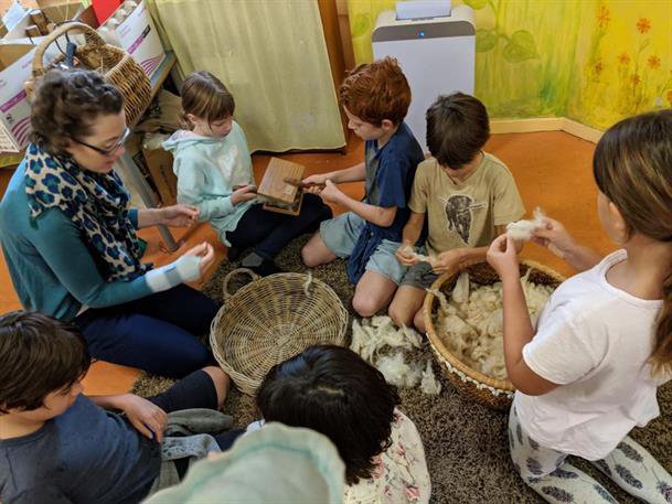 Class 3 are nearing the end of their Farming main lesson. They visited Warrah Farm - the Steiner community, farm and school for children and adults with special needs. They sowed seeds, collected manure and saw the larger scale biodynamic farm in action. In the classroom, they washed, carded and spun wool, have been growing seeds, threshing and winnowing the wheat, then grinding flour for their own fresh bread to go with their hand-made herb oil, cheese and jam! It was a busy week!