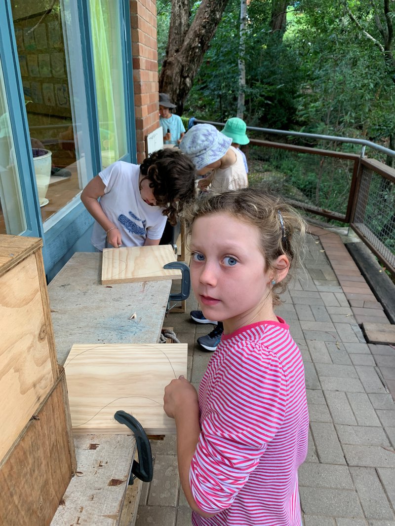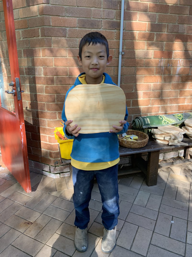 Every Thursday after lunch, Class 3 break off into three groups and enjoy an afternoon of either gardening, cooking or woodwork. In woodwork, their busy hands have created wooden chopping boards.