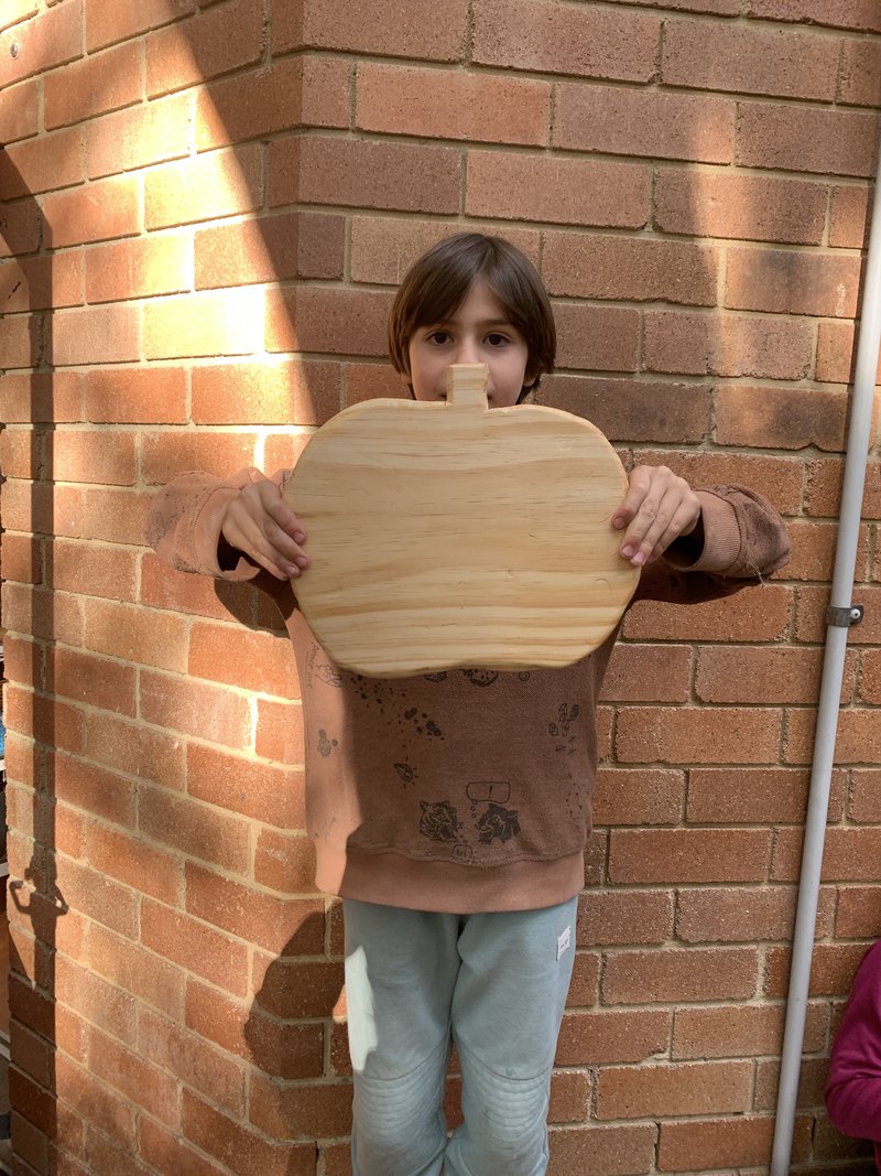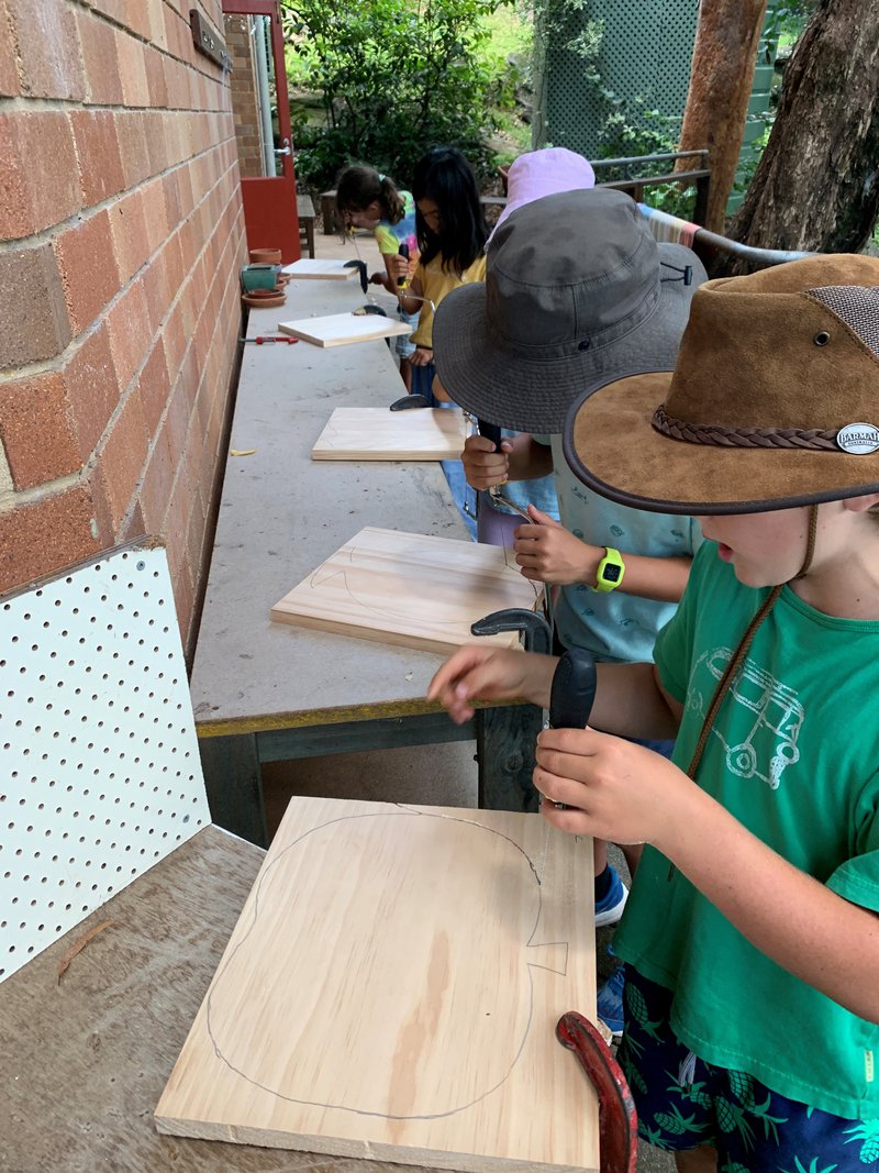 With the support of their Class Teacher Prue Ritchie and parent volunteers, they started with a square of pine wood each and had the choice of an apple, bird, fish or cat shape. Together, they sawed, filed and sanded by hand, to create a treasured and practical piece of art to take home and enjoy with family.