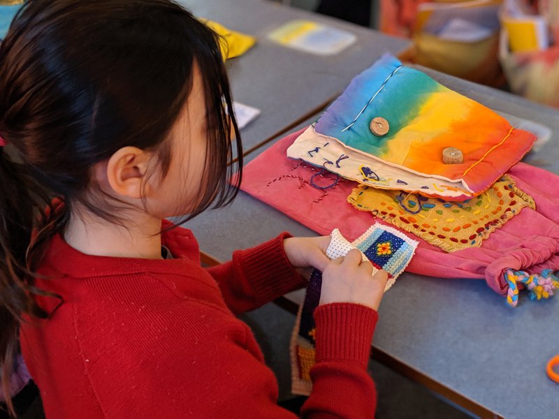 Continuing on from their Writing, Paper and Pen Main Lesson, Class Four are cross stitching their own fountain pen covers with individual designs. They design their pattern on paper first and then work to recreate it on the cross stitch fabric.