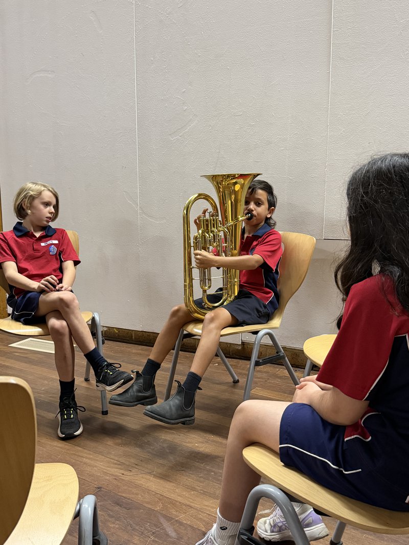 In Classes 5 and 6, students can select an instrument from the string, woodwind or brass family to learn. Class 4 were able to enthusiastically listen to and try out a range of woodwind and brass instruments in the hall today in preparation for the next stage of their musical journey.