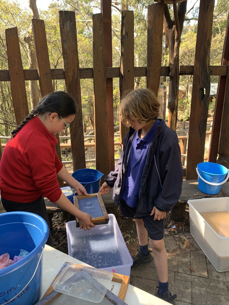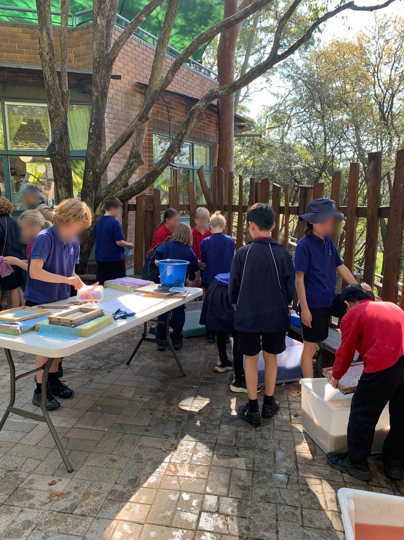 Late last term, Class 4 enjoyed an afternoon in the sunshine making paper lead by Hand Work Teacher, Elizabeth Ellean. After carefully observing a demonstration, they rolled up their sleeves and, in groups, made paper from scratch.