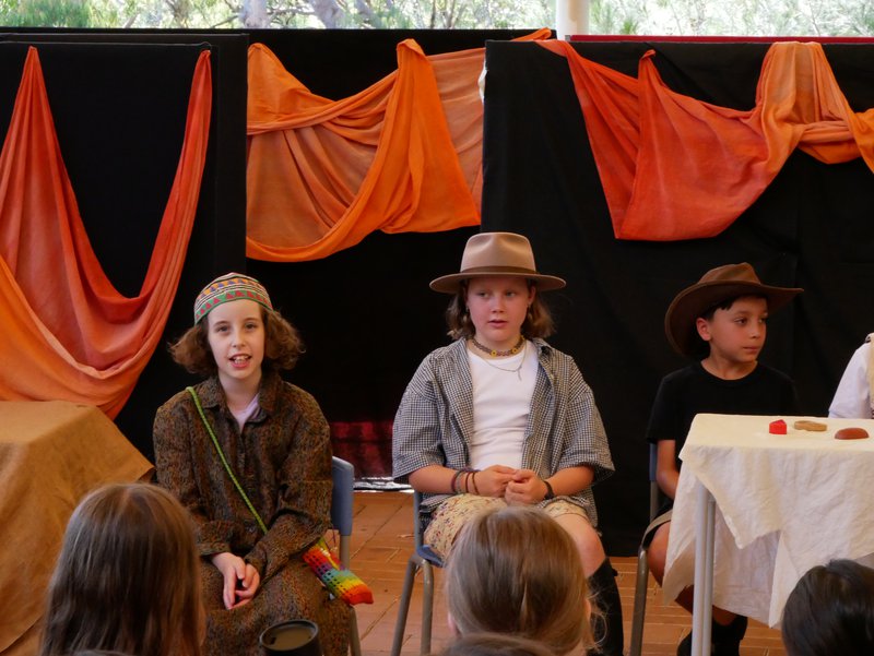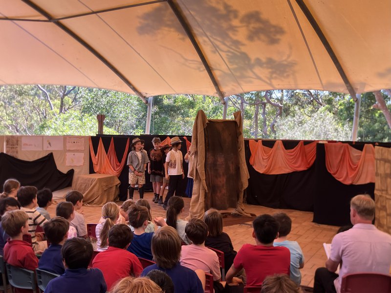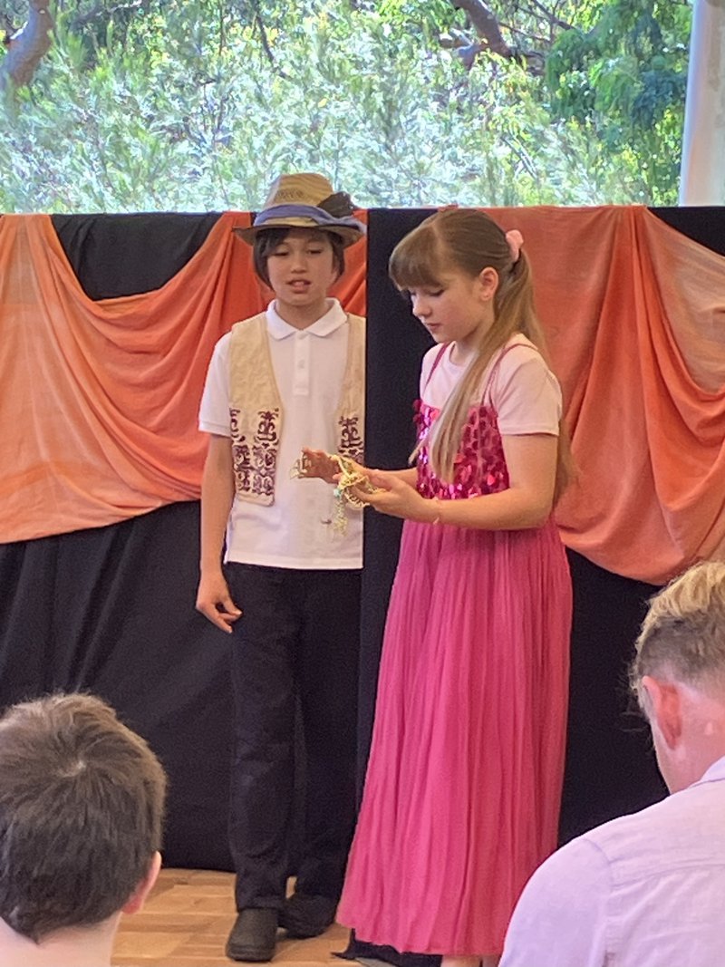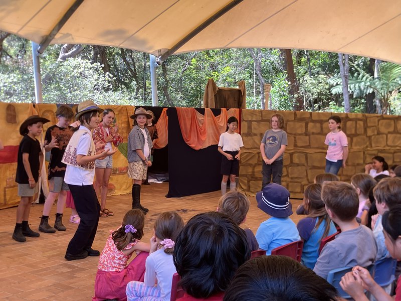 Class 4 performed their play on the Year 9 balcony last Friday to an adoring crowd. Class Teacher Jamie Loftus wrote the play which explored themes of storytelling and narrative. This was a beautiful extension of their History of Writing Main Lesson. Well done Class 4!