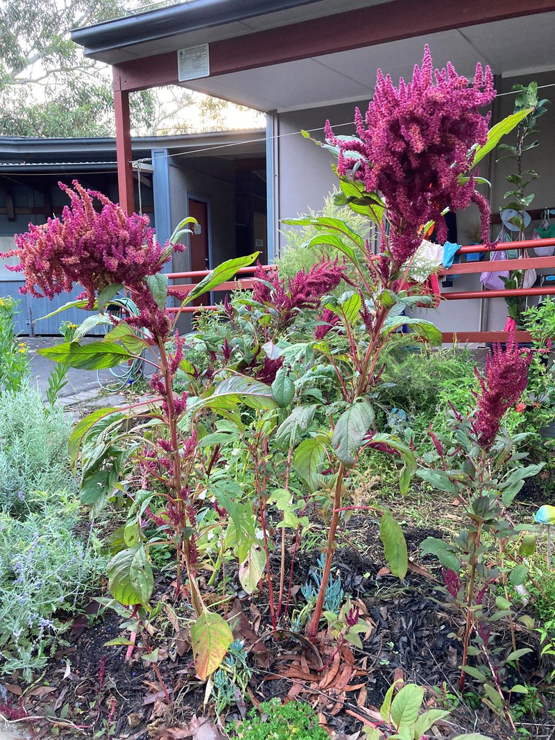 Many Glenaeon students have learned how to separate the amaranth flowers from the seeds as Catherine Pilko and other Kindy teachers have taught. The seeds have been heated on a skillet and become puffed or they have been pounded with a mortar and pestle to make amaranth flour. Many of your children have eaten the leaves stir-fried when you have visited our Middle Cove garden classes.