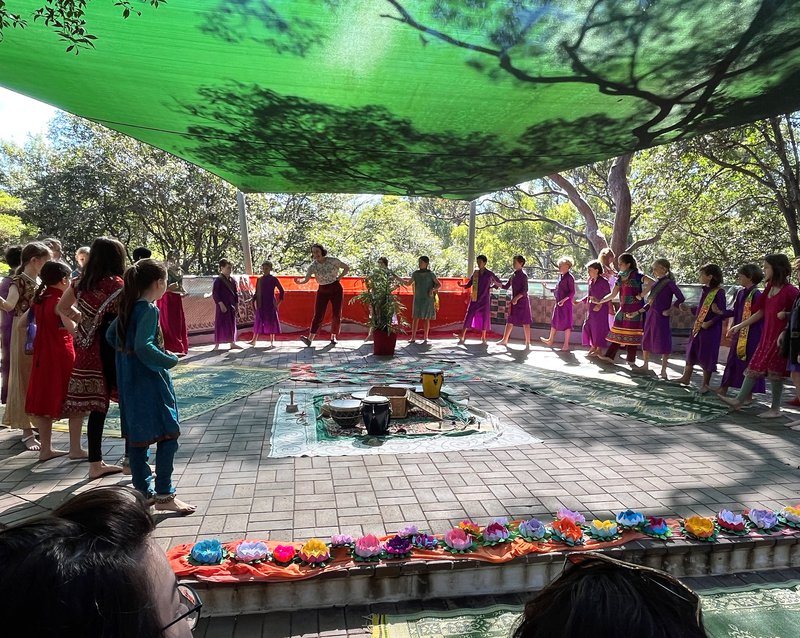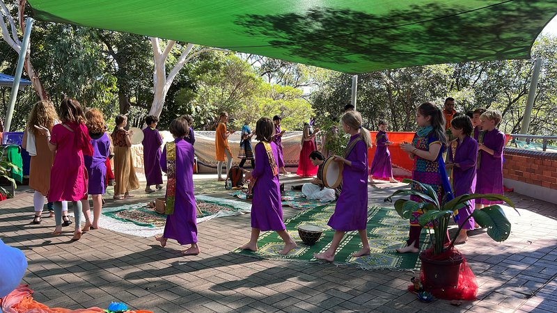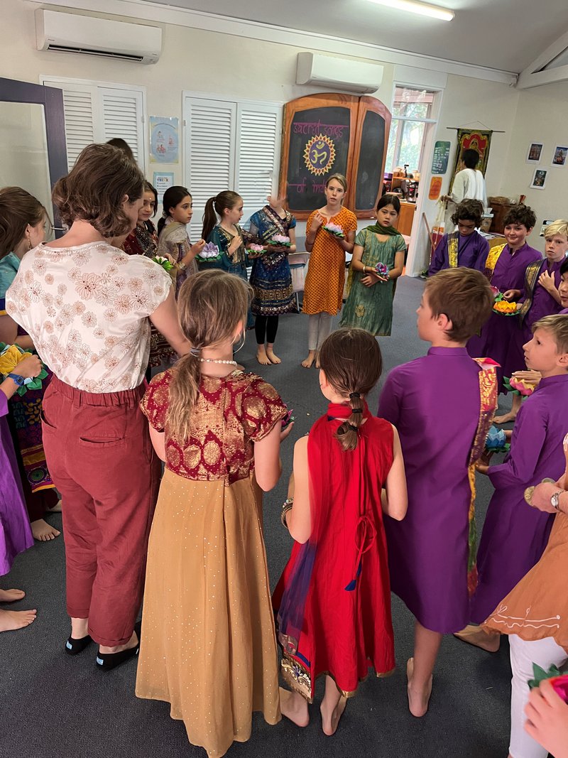 The Festival was a culmination of the ancient Indian mythology main lesson called, “The Sacred Songs of India”. Whilst immersing the class in the colourful stories from the Vedic epic “The Mahabharata”, the children are introduced to the three main gods; Brahma the Creator, Vishnu the Protector and Shiva the Destroyer. However, the stories are an interweaving of gods and humans. The gods appear in human form and humans are able to perceive and converse with the gods. There is a repeated theme of personal hardship and sacrifice, made in order to attain higher realms. Renunciation of power, wealth, comforts, and pleasure, portend a path to enlightenment.