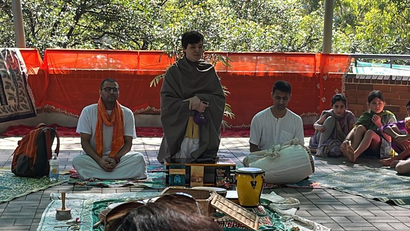 The sun shone bright as members of the Hari Krishna Temple “ISKCON” group performed Kirtan meditation. The guests also shared their knowledge, mantras, song, music, and food which was shared as a feast and a Class 5 community celebration.