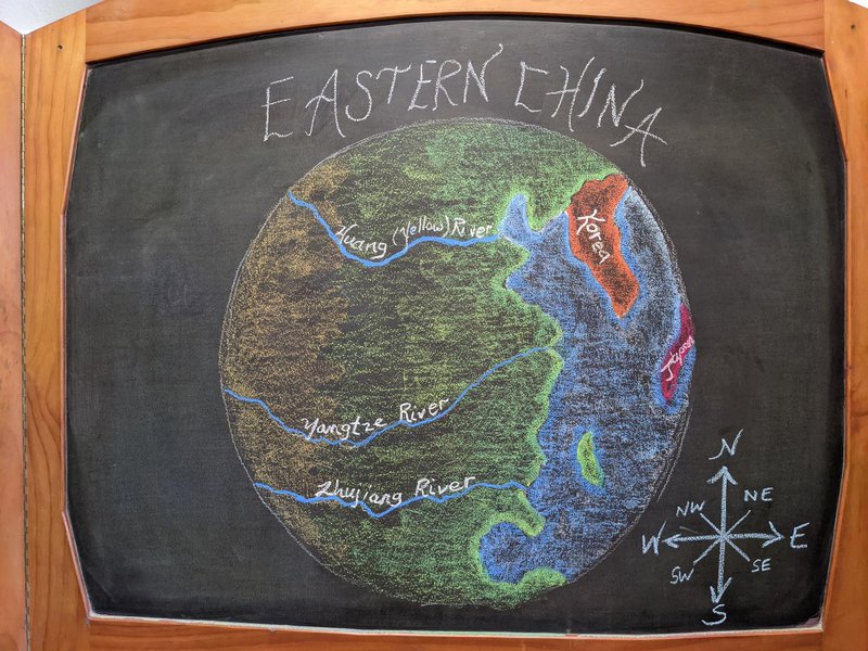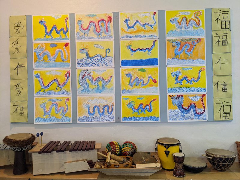 Class 5 have immersed themselves in the study of Ancient China with Class Teacher Katherine Arconati. Their room is a museum and gallery of their work was well as Chinese artefacts, instruments and calligraphy sets that the children are using. This blackboard beauty was drawn by teacher Katherine Arconati.