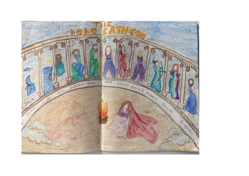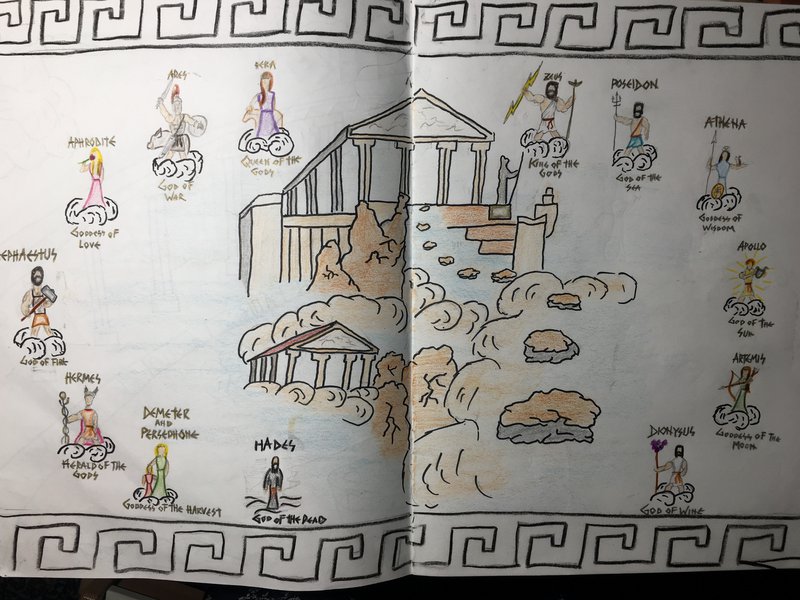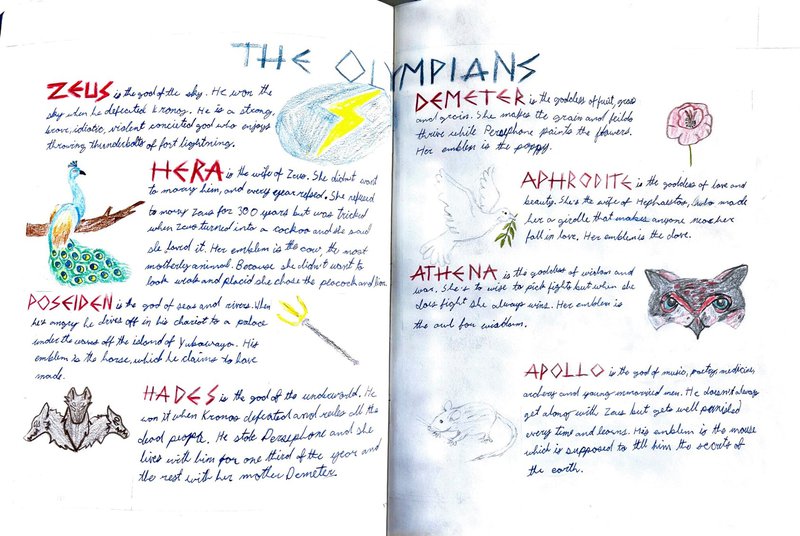 The children loved hearing the stories of the imperfectly humanist gods and goddesses. They each completed a project in which they read, wrote, illustrated and retold the story of one of the 12 Olympian gods. They also heard tales of the first heroes before the fall of troy. Despite the challenges of distant learning, their work continues to demonstrate their devotion to beauty and their ever emerging capacities for writing and expression.
