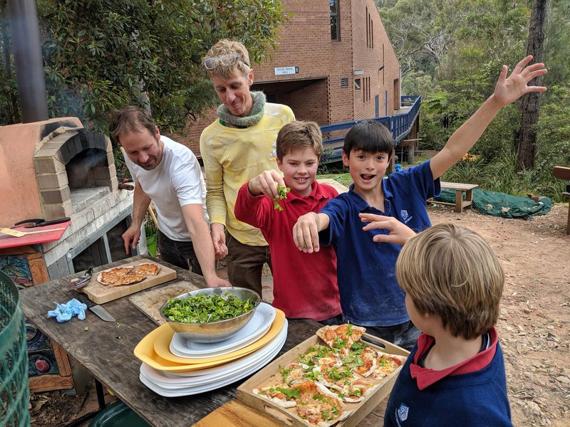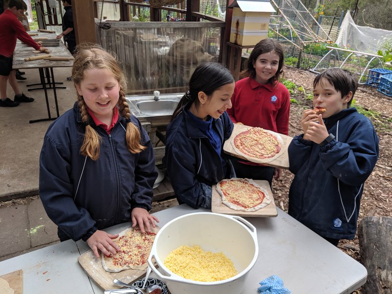 Class Five held their termly pizza day this week - it's always a popular event, preparing lunch for the Middle Cove school community by hand and cooking it in the Middle Cove Pizza oven near the garden. Harvesting biodynamic greens and herbs from the garden, students made herb-infused seasoning, rolled pizza bases (the dough kindly made by Year 8 students in the Food Technology class), and cooked them in the pizza oven with Class 5 parent helpers Nick Meredith-Jones and Patrick Franklin. Pizza is delivered to the primary classes and the High School and teachers buy directly from the garden stall. Making approximately 110 pizzas is no mean feat. Thanks to Gardening teachers Kathy Thangathurai and Michelle Chambers as well as Class 5 Co-teacher Michele Bosman who all help to facilitate this part of the Class Five curriculum