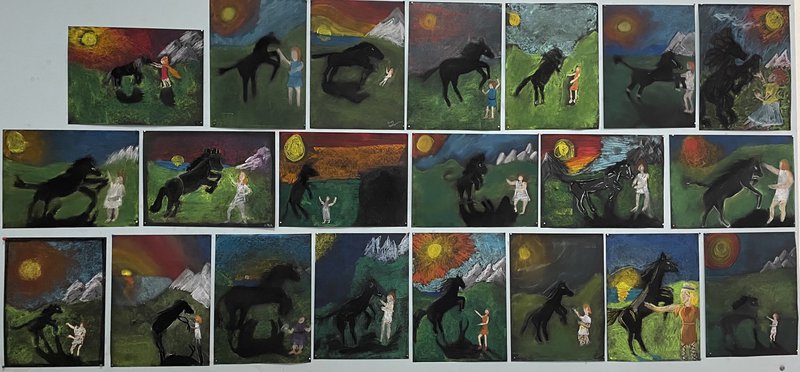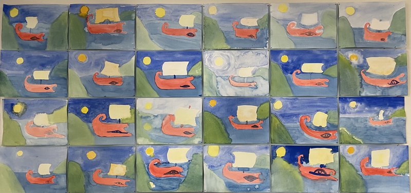 Class Five has been enjoying the new “new normal” as they take advantage of the beautiful space outside of the classroom. They have spent the past week finishing Main Lesson studies of Ancient Greece and working on individual research projects to deepen their knowledge. First week back has seen a renaissance of artistic work including watercolour paintings of Greek ships and pastel drawings of Alexander the Great taming the wild horse he named Bucephalus.
