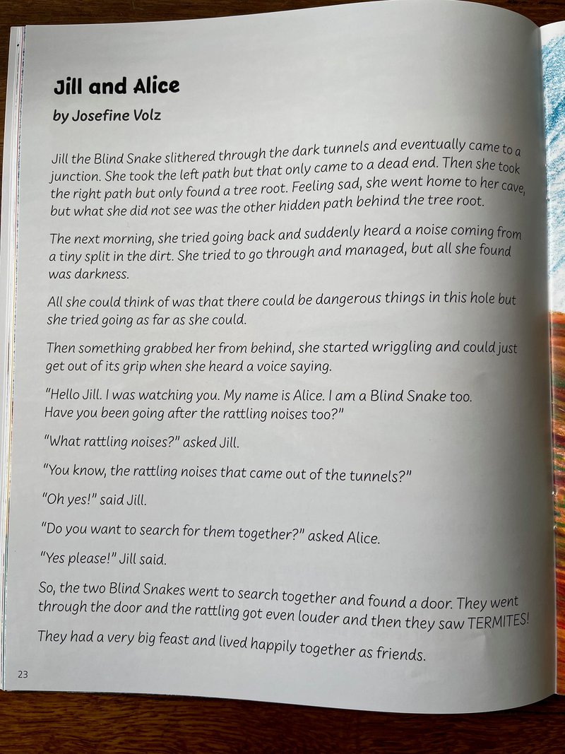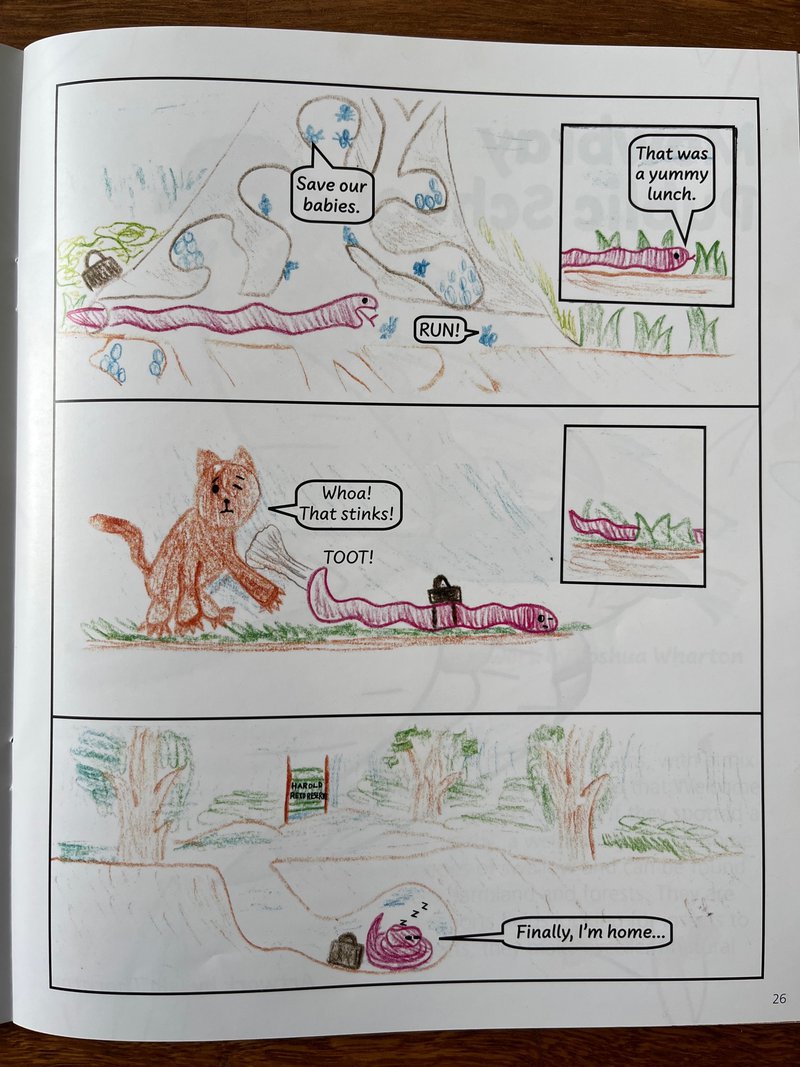 Their poems, stories, comics and drawings were chosen from many submissions from other Class 5 students in the local area to be entered into a Wildlife Story book series. These books are distributed over the entire council area and added to libraries and also made available free online.