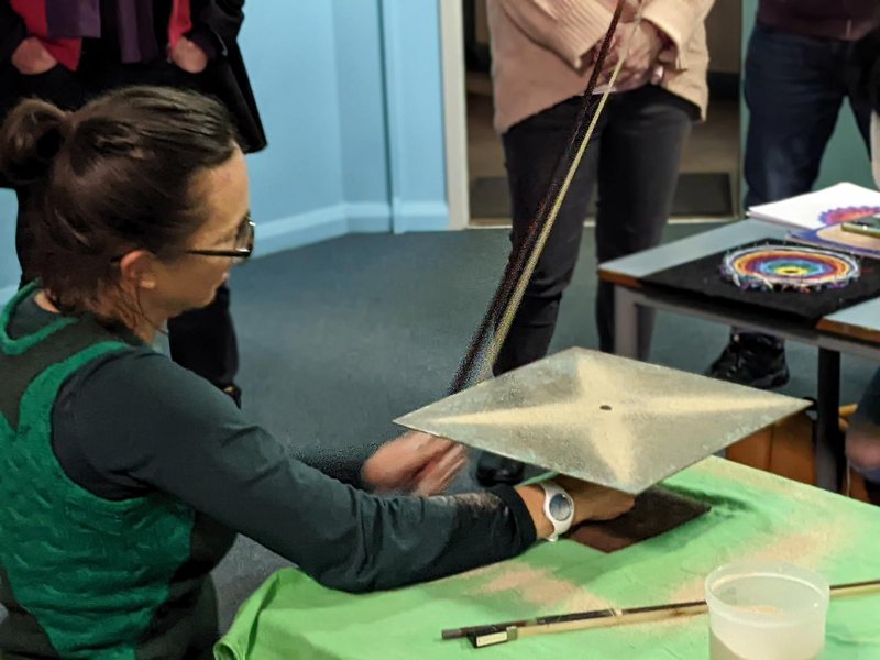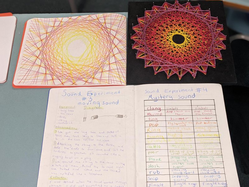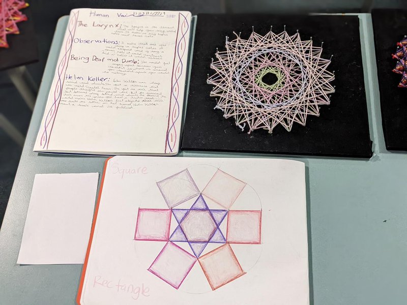 Class 6 parents were able to come to the classroom for parent-teacher night and saw the beautiful workbooks from recent Main Lessons "The Physics of Sound" and Geometry. Also on display were stunning geometric patterns created from their geometric designs, each individual and different. Class Teacher Katherine Arconati demonstrated how the Chladni Plate creates sand geometric shapes that is vibrated by the musical bow. Parents viewed recent artworks from their Astronomy Main Lesson as well as a felted star-sign constellation wall hanging made as a gift for the teacher by one student. It was wonderful to meet back on campus and experience some of the rich classroom learning that Glenaeon students enjoy each day.
