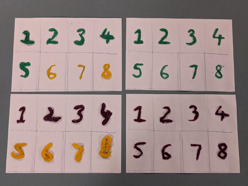 At the end of Term 1, Class 1 explored numbers from 1 - 12, including roman numerals. Writing, playing and using bean bags with numbers, they also made them in beeswax and used their new counters and counting bags to explore simple addition and subtraction.