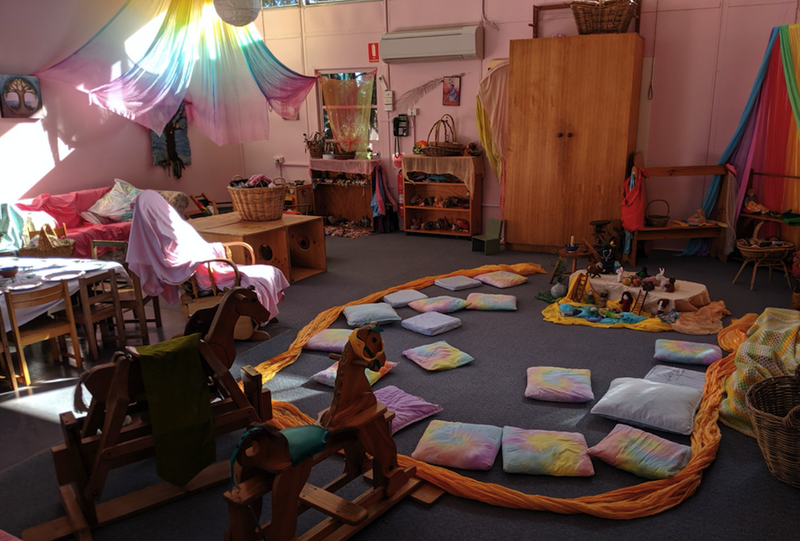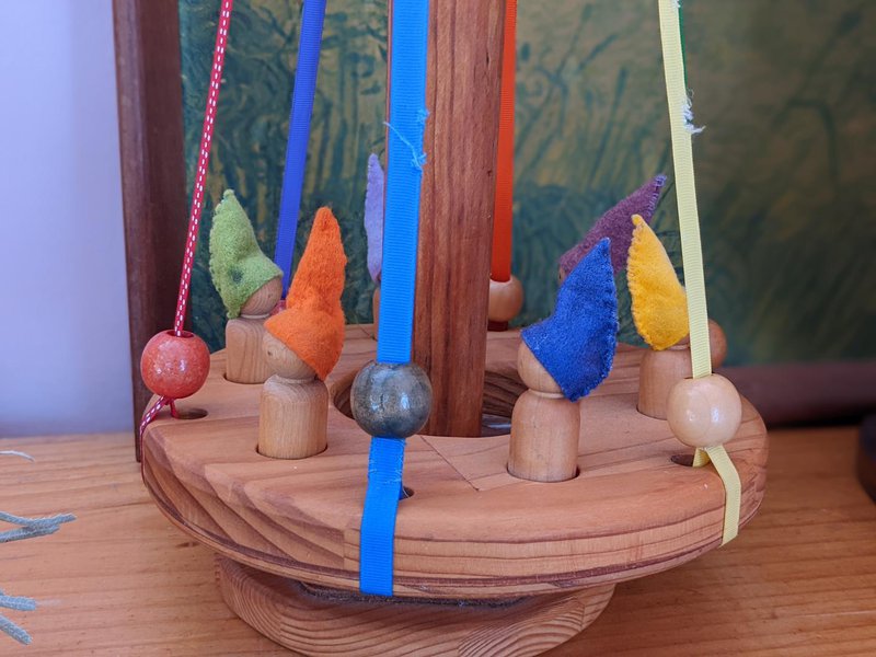 The Playgroup time begins with a story journey around the garden - we explore the wonders of nature in a playful adventure. Returning to the Playgroup room, we sit on pillows to listen and watch a beautiful story told by puppets and our felt animals and dolls. We sing together, learning songs with actions and finger rhymes. Then we knead, roll and bake delicious bread together. As the smell of baking bread fills the room, we play with the wooden, felt and natural toys - rocking horses, animals, blocks, scarves, vehicles and much more. Parents enjoy each others' company and the sense of community that grows together.