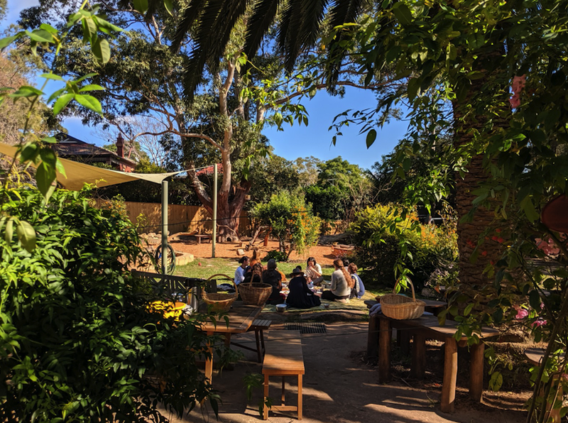 If the weather is fine, we take our fruit, some bread, butter and toppings to the garden and share a healthy and delicious morning tea together. The children play in the sandpit and gardens, climbing, digging, pumping water, exploring and building creations. Songs bring us all together again and we return to the Playgroup space for a closing circle. We pack up our freshly-baked bread buns to take home. It's another lovely day at Playgroup so come along and join us!