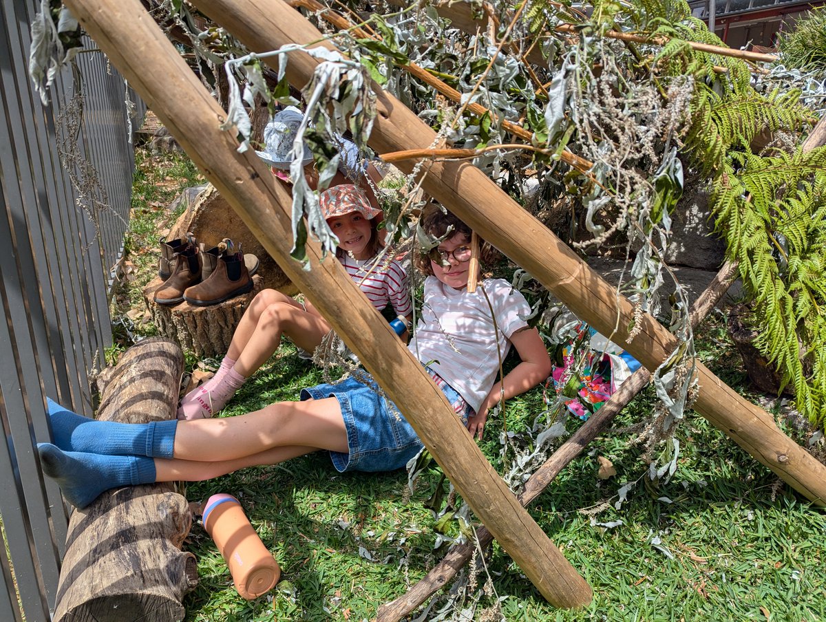 Children built two brilliant cubbies from natural materials, including some new wooden stumps that had to be trolleyed across the playground.