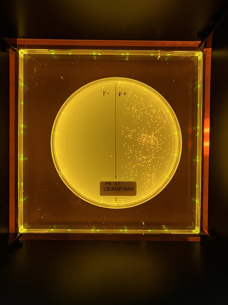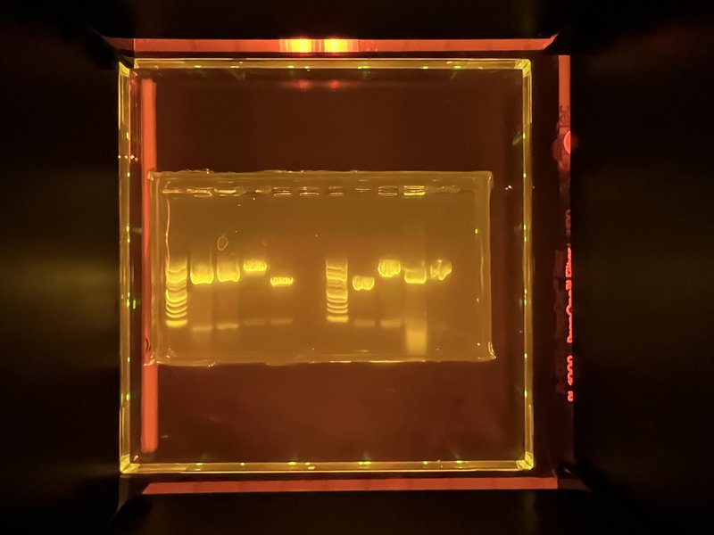 Over the course of the program, students practised precision pipetting and gel electrophoresis, learned how plasmids can be engineered, and applied these tools to create genetically modified bacteria. By adding a recombinant plasmid containing the red fluorescent protein (rfp) gene from a sea anemone into the bacteria E. coli, they were able to produce bacteria that glowed red under the blue light.