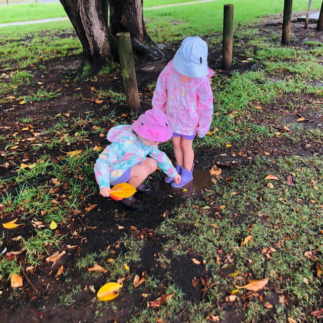 This week, the leaves are being used as puppy dog tails. What a joy to be in nature and allow the imagination to fly.