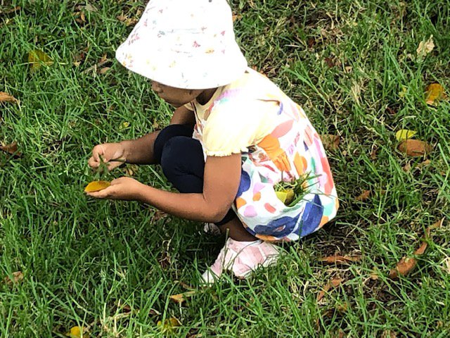 Outdoor play in new environments allows children the freedom to connect with the changing seasons and the opportunity for trees, grass, earth, leaves, flowers, acorns to become resources for play.
