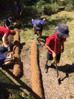 In our gardening lessons this term, Class 6 has been learning about the effects extreme and excessive weather has on plants and the environment. A very relevant topic given our heavy rains of late. Students observed how all this rain has moved around and through our garden area and the resulting damage. The erosion of soil and the movement of debris was in clear evidence near the hall and Class 6 went into action. They worked with materials on hand to slow and redirect the water flowing, as well as prevent more debris from moving downhill. Great effort Class 6!