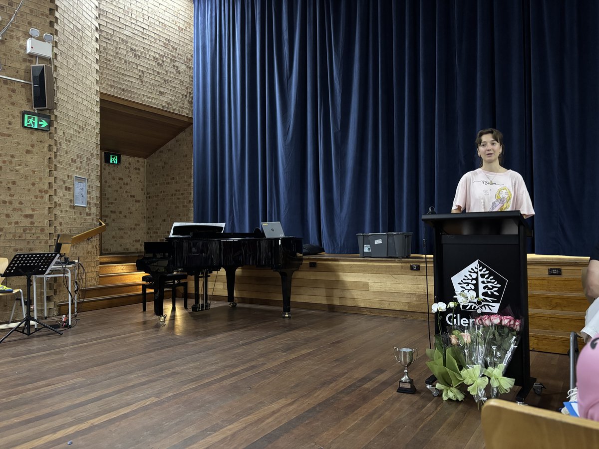 We then shared some important staff acknowledgments with students presenting their heartfelt farewell to much-loved departing teachers. Archie extended gratitude to Eurythmy Teacher, Emily Collett, Ria And Saoirse to Science Teacher and Year 11 Guardian, Dr Hernan Carol Garis and Sofia and Juliette to Head of History, Terry Hawes who are all embarking on new and exciting chapters.